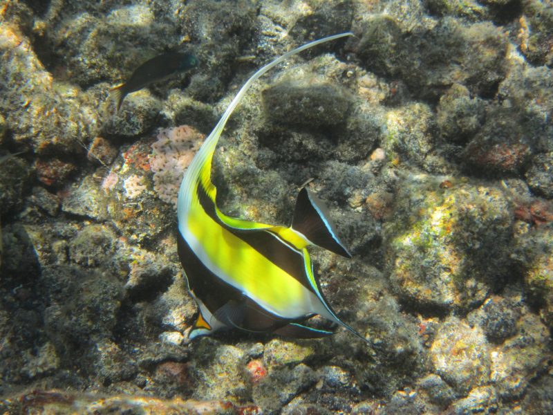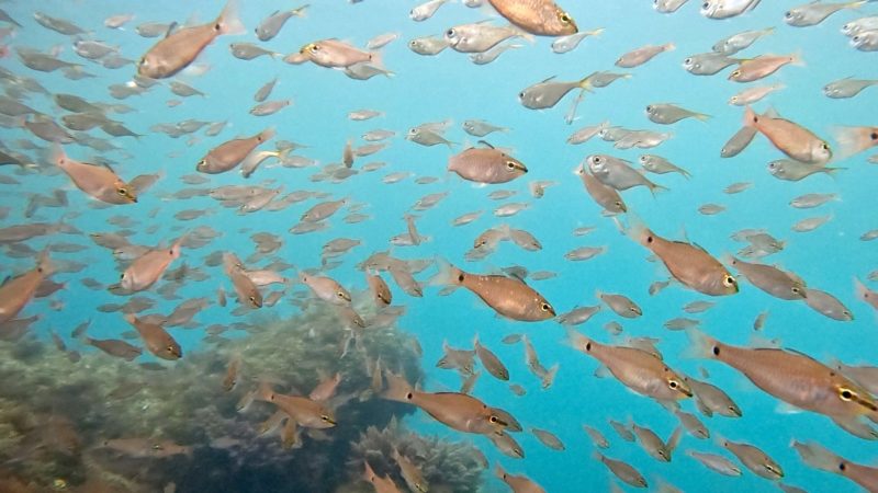 海に向かって左側の岩場で沢山のお魚を見ることができます。