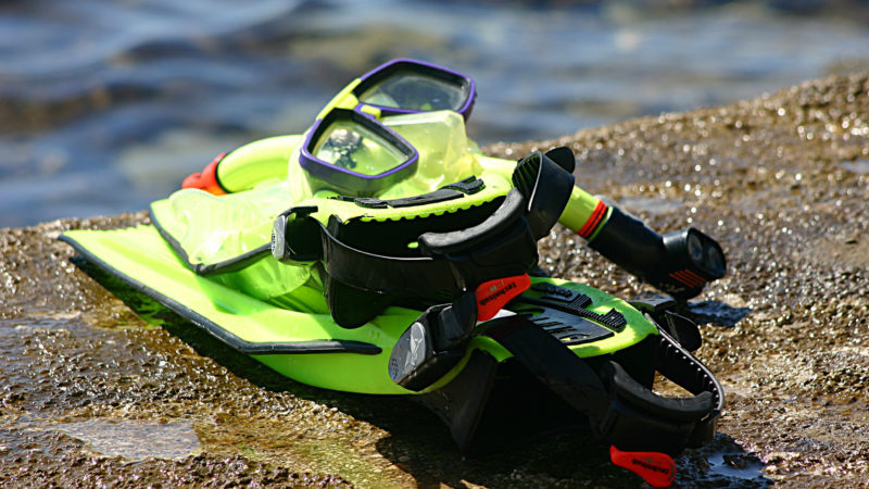 足を着いた際に岩や貝殻で怪我をする場合があります。マリンシューズの着用をお願いします。 - フィン