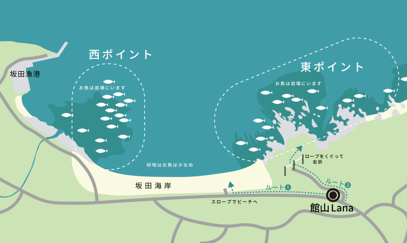 館山Lanaの目の前に広がる海は、関東有数のシュノーケリング・ダイビングスポット。